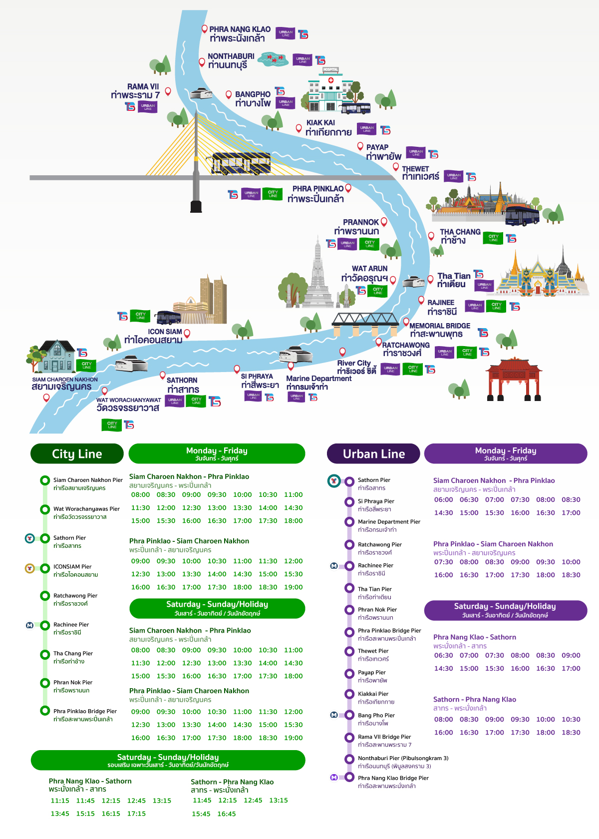 - Integrated bus & boat network along Bangkok’s cultural, riverside, and modern city attractions.